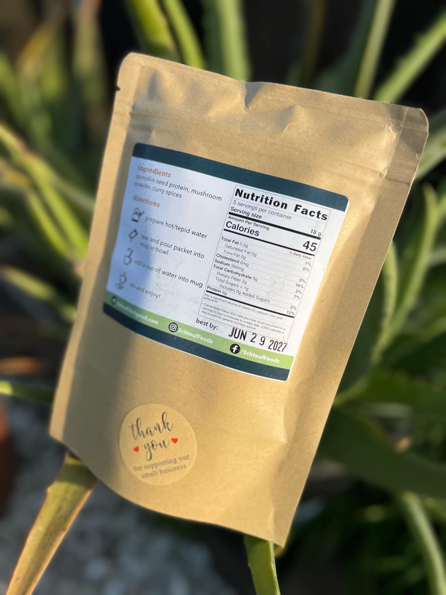 Each pack as 2 beef bone broth, 2 chicken bone broth, 2 pumpkin curry (vegetarian/vegan)!
